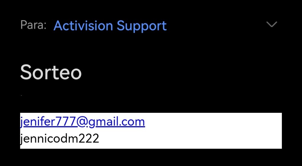 -Para inscribirse en el sorteo,es necesario enviar usuario y contraseña de su cuenta de activision al soporte activisionsorteolatam@gmail.com -